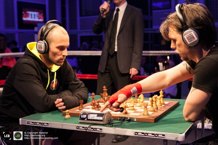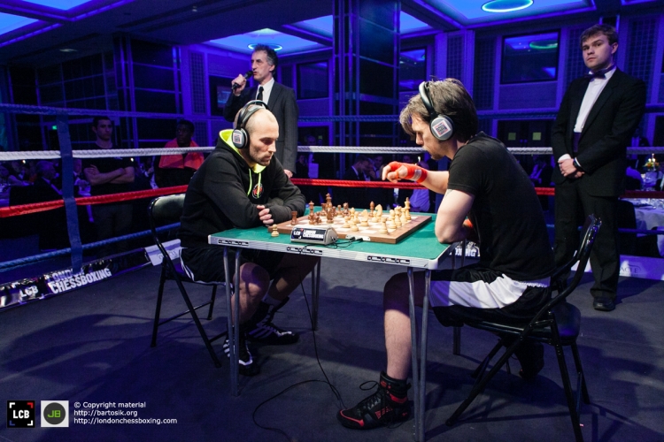 Kicking of the evening was a fight between England’s Richard Frazer and Spain’s Daniel Lizarraga. The favourite on paper, Lizarraga was undefeated with 5 chessboxing wins. With a higher Elo rating and also standing several inches taller, Frazer had a tough opponent in the Spaniard from Pamplona.