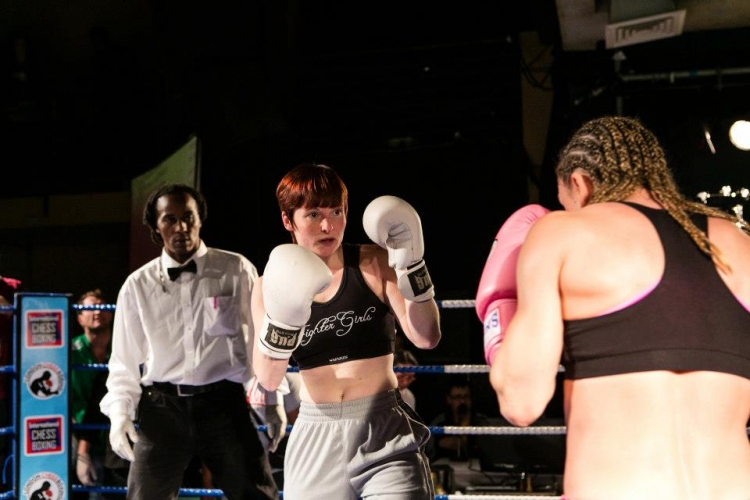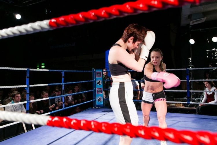 | The other headline of the night was the UK Women’s Flyweight Title, between Exeter’s Ruthie Wright and Red Dexter from Worthing. This thrilling bout went almost the full distance with a tense battle on the chessboard being complemented by an energetic pugilistic encounter. Wright’s superior fitness became the deciding factor as she forced her opponent to retire in the sixth. Dexter has nothing to reproach herself for though as she took the bout at very short notice following a last minute withdrawal. Despite a lack of preparation the south coast fighter showed she possesses a true warrior’s spirit and she captured the crowd’s heart with her determination and willingness to mix it. |