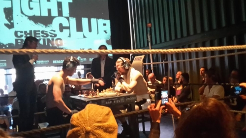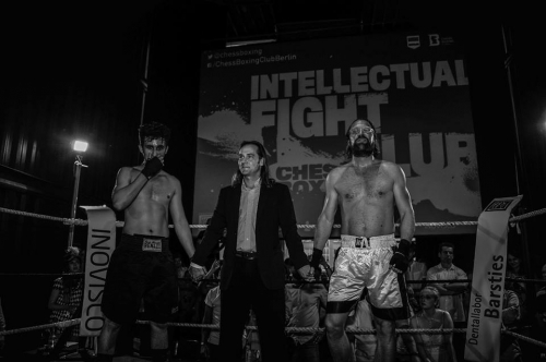 | The first match of the evening saw Iepe Rubingh , the inventor of chessboxing, as well as the person who in November 2003 won the first ever chess match, return to the ring facing one of the hopes of German chessboxing : Arslan Charyev . An exhibition match won by the first of the two. |