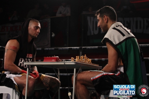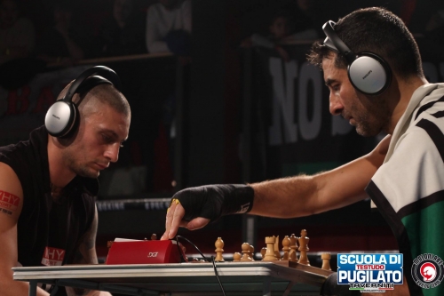 An exciting chessboxing match awarded the Italian middleweight title of the elite series. A particular and very rare match for at least two reasons: firstly, the 11th and final round was reached and, secondly, the chess game ended in a draw (due to stalemate). In the event of a drawn game in the last round, as in this case, the regulation provides that the winner is declared on points in boxing.